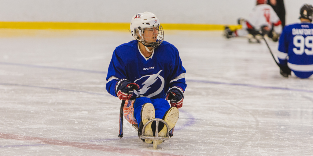 The USA Hockey Sled Showcase Game took place Friday (Nov. 8) at the Farmer's Branch rink. The contest featured players from the U.S. National Sled Team and the U.S. Women's Development Sled Team. Declan Farmer (Tampa, Fla.) tallied the decisive shootout goal to lead Team Green to an 8-7 victory over Team White.