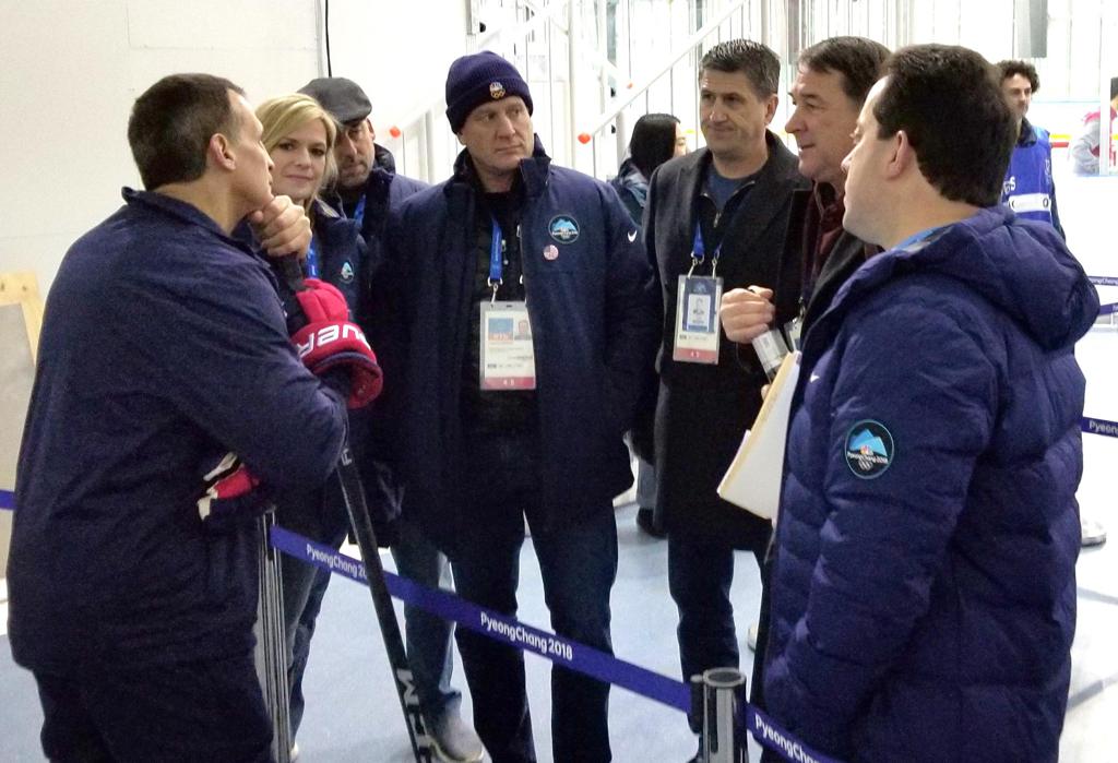 Gavin Regan, vice president of USA Hockey and chair of the organization’s International Council arrived last night and is here for the duration of the Olympics. He took in Team USA’s practice today.