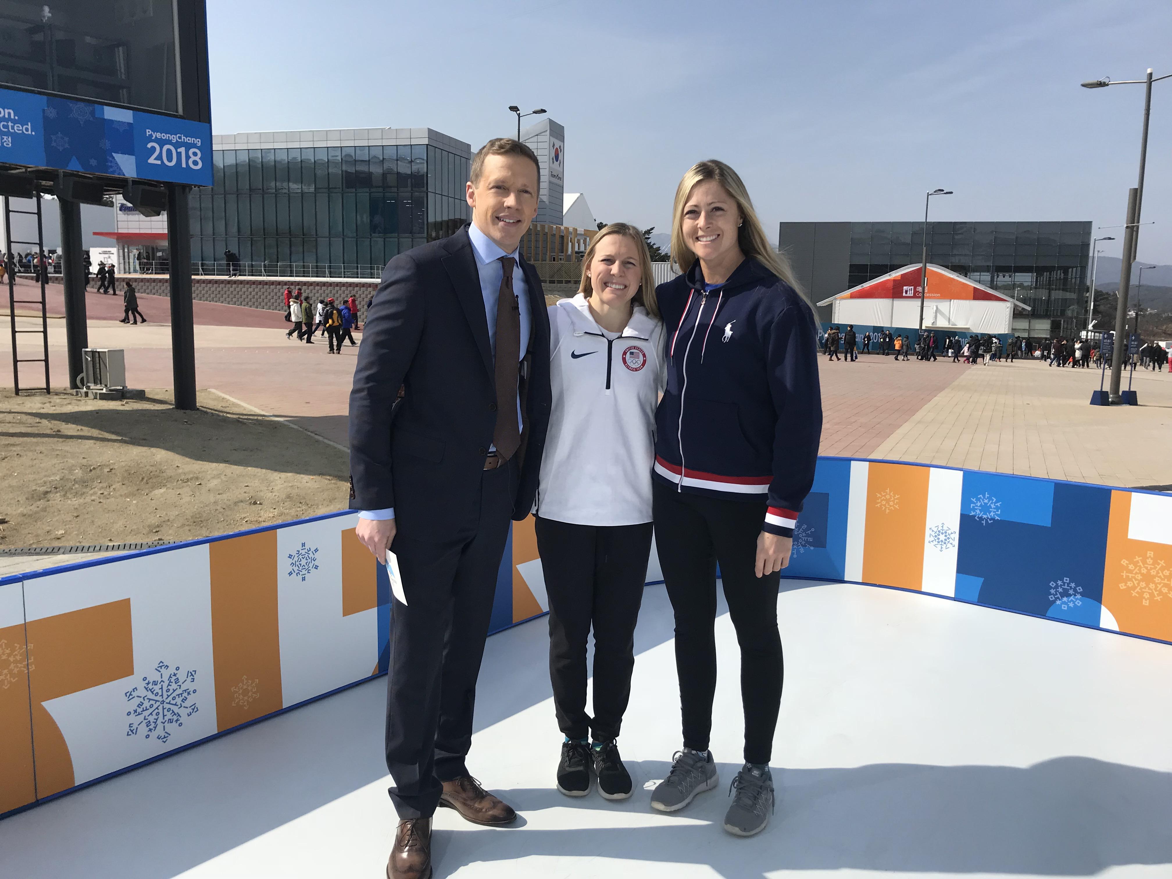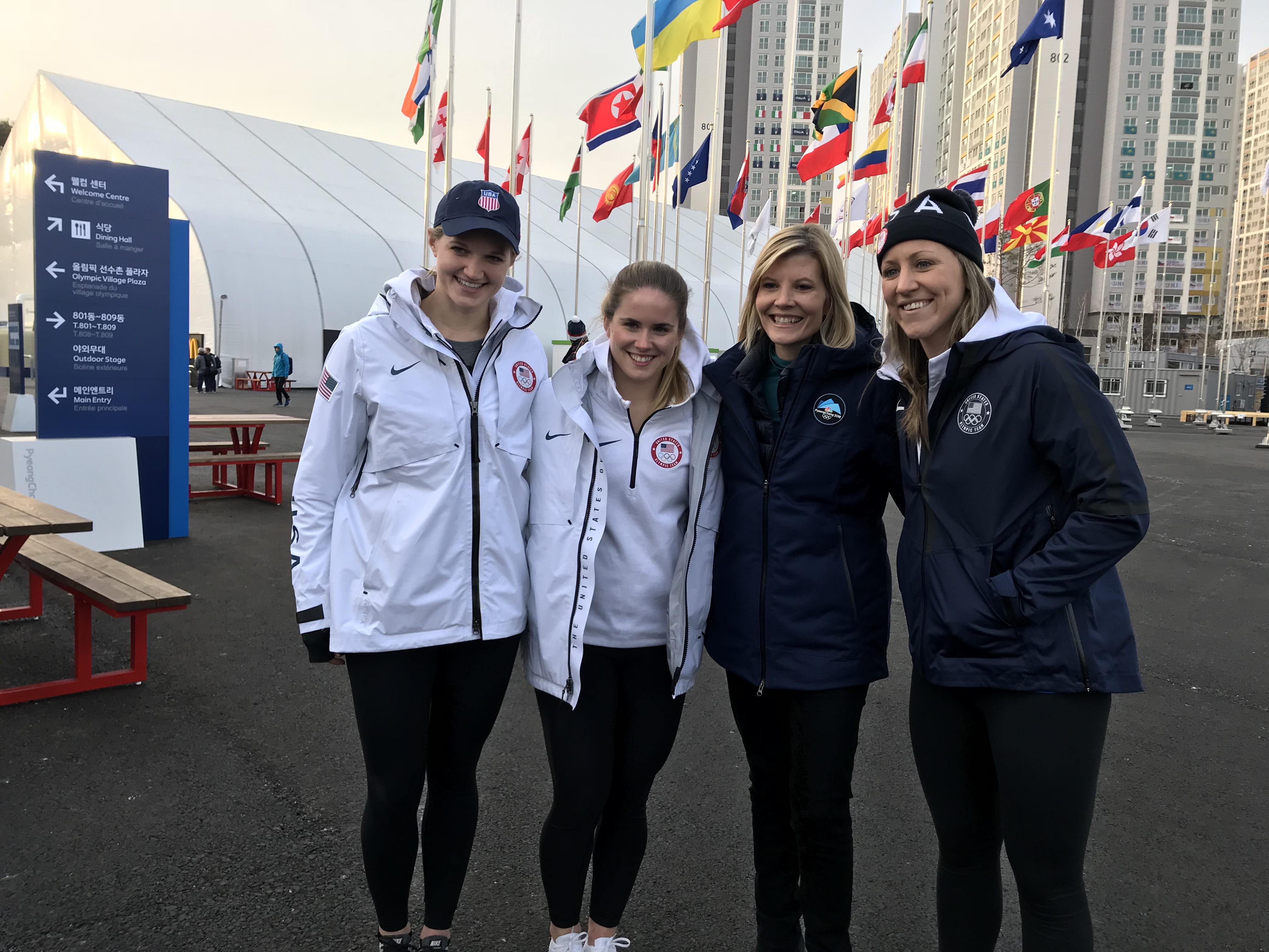 Multiple U.S. players got a chance to take part in some television interviews today, beginning with Kendall Coyne (Palos Heights, Ill.) and Gigi Marvin (Warroad, Minn.), who chatted with Liam McHugh of NBCSN today outside on their synthetic ice set near the hockey venue. Jocelyne Lamoureux-Davidson and Monique Lamoureux-Morando (Grand Forks, N.D.) sat down with ESPN’s Julie Foudy, andDani Cameranesi (Plymouth, Minn.) Meghan Duggan (Danvers, Mass.) and Lee Stecklein (Roseville, Minn.) chatted with NBC’s Kate Snow at the athlete village.