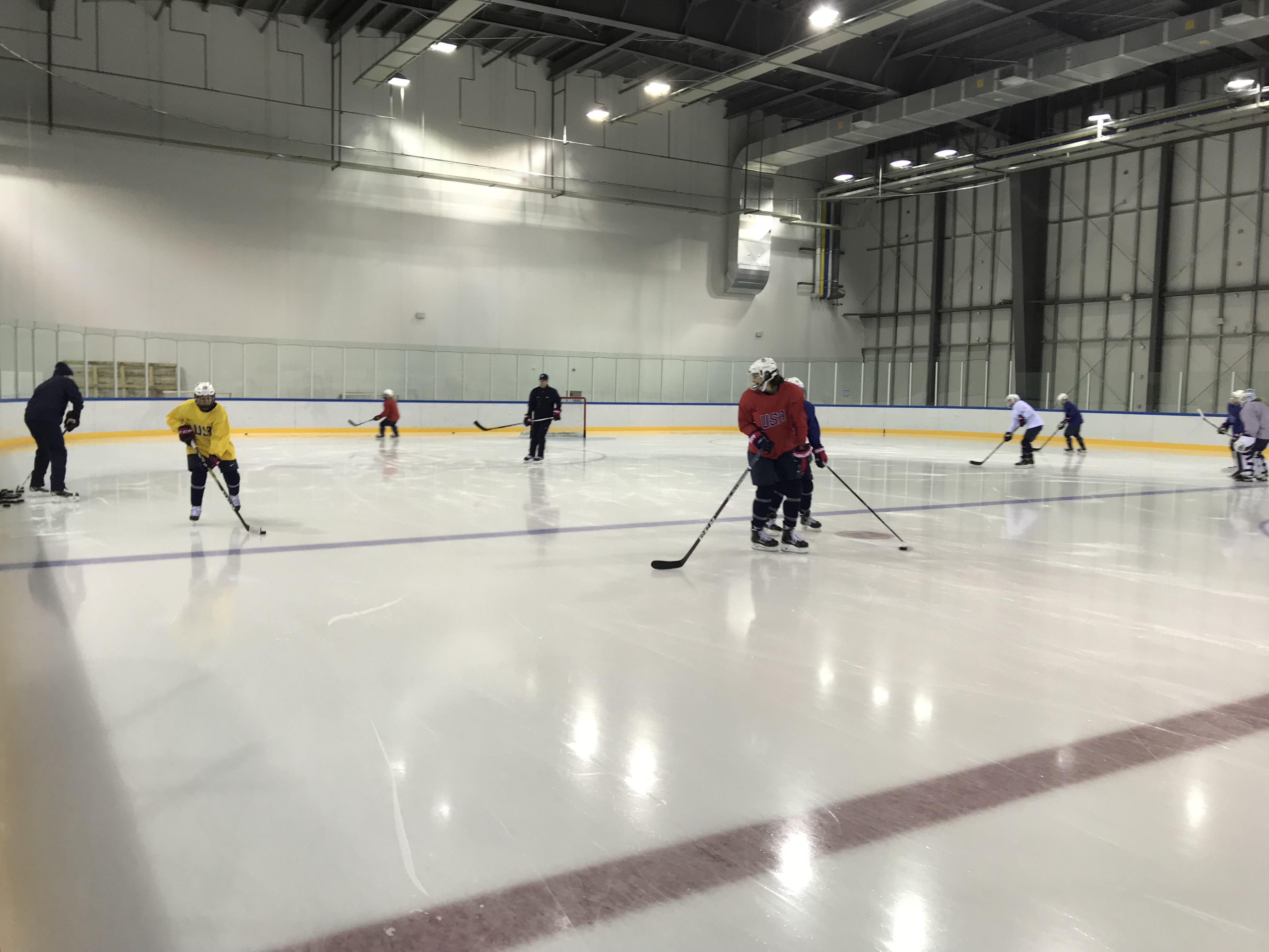 The U.S. held practice today from 1:15-2:30 p.m. in the Gangneung Hockey Centre training rink, which is right behind the venue where the big game will be played tomorrow. The practice was well-attended by members of the media hoping to get some last-minute interviews before the gold-medal game. Among those in attendance were the Associated Press, NBC affiliate stations from Indianapolis, Chicago and Cleveland, TSN and CBC.