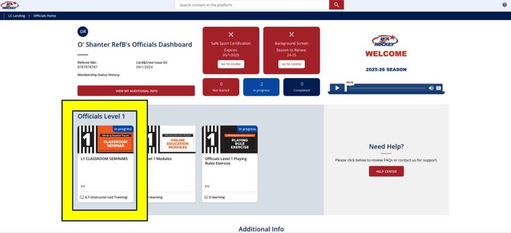 The USA Hockey Learning Center is the new online learning management system serving officiating and coaching education. Access to the Learning Center is done using your USA Hockey Single Sign-On ID (SSO) which is shared after submitting your online membership application and fee.