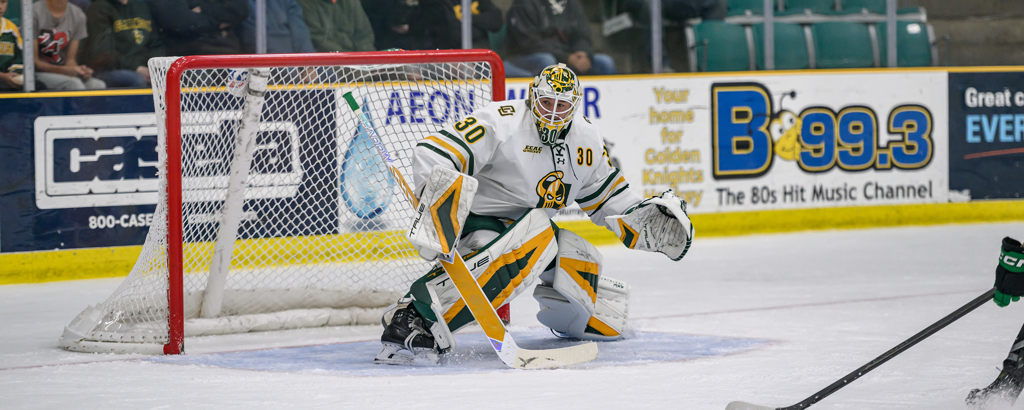 Indeed, his hard work continues to pay off. He allowed two goals or fewer in three of his first five starts for the Golden Knights and he already has posted a signature victory. He made 36 saves in a come-from-behind upset of No. 4 Penn State on Oct. 9 — a meaningful moment for a player who has climbed the mountain of amateur hockey.