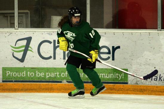 In the first contest of the day, Team Black scored a 3-2 victory over Team Green. Team Green’s Lily Farden opened the game with a first period goal before Team Black’s Katherine Tresca and Jillian Parsons posted first period markers to make it 2-1. Team Black’s Megan Jacobs sealed the win at the end of the first period with the game winning goal. Anne Berry completed the scoring for Team Green with a goal in the second period.