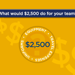 $2,500 can go a long way - in the past, teams have used the monies to fund player scholarships, purchase new uniforms or equipment, pay for team travel expenses, or create opportunities for underprivileged kids in the area who want to play.