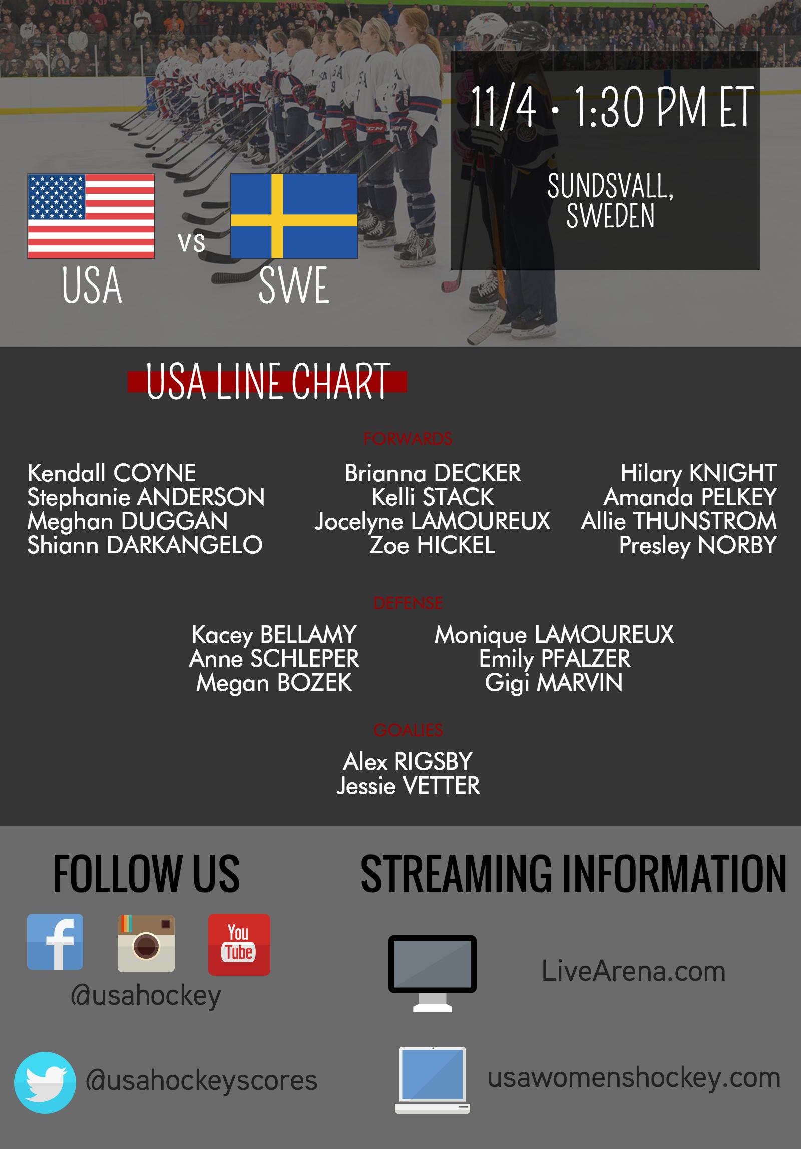 The U.S. will open the Four Nations Cup today against host Sweden. Below are the game notes and line charts for today's game.
