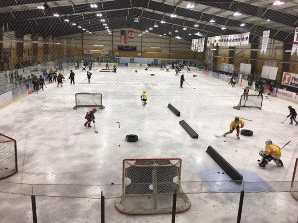 Players skate through stations during Montana's 2017 preseason hockey summit. The event provides a high-engagement learning opportunity for kids and coaches alike.